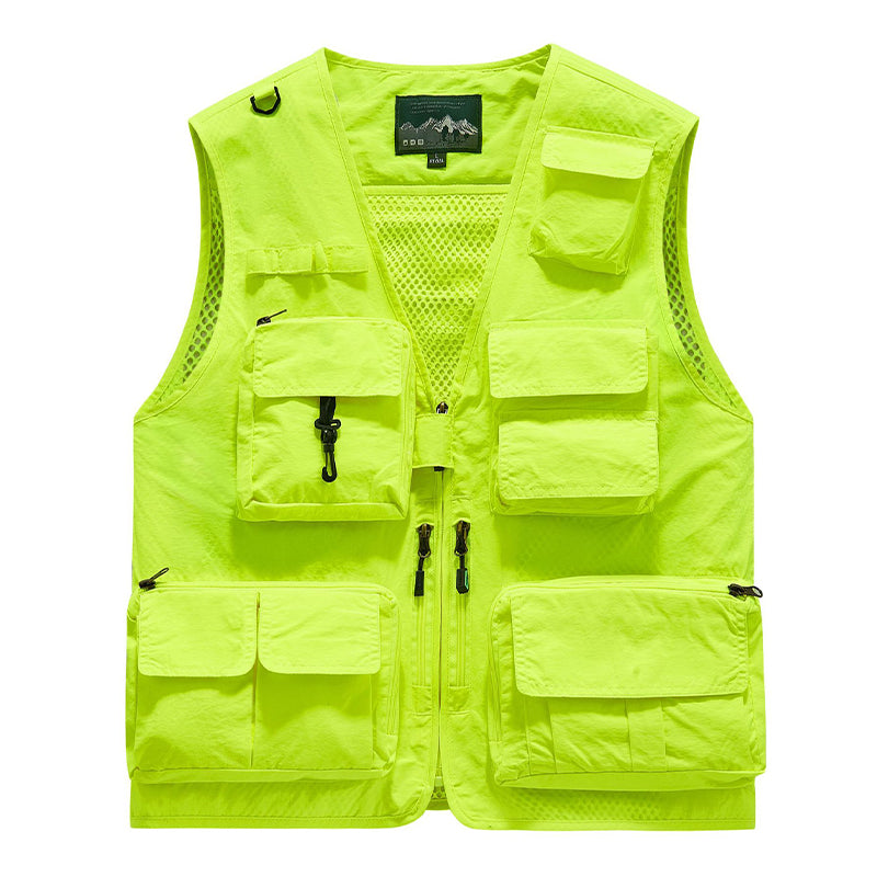 Stay comfortable and organized during all your outdoor activities with our Men's Utility Cargo Vest. Made with breathable and durable acrylic fabric with mesh, this vest is suitable for every season. With varying-sized functional pockets, it's perfect for a wide range of outdoor activities fishing, safari, hiking, camping, travel, photography, climbing, hunting, bird watching, adventures, motorcycle riding, outdoor sports as well as work, daily casual, etc.. Stay cool and prepared with this lightweight and quick-dry vest.