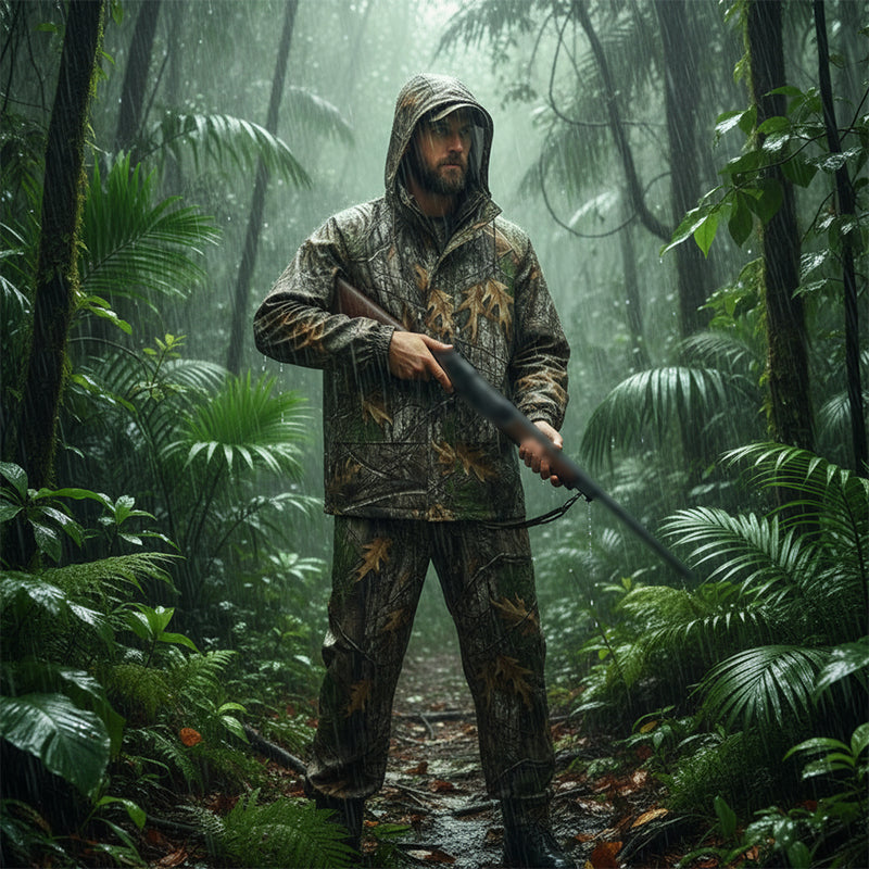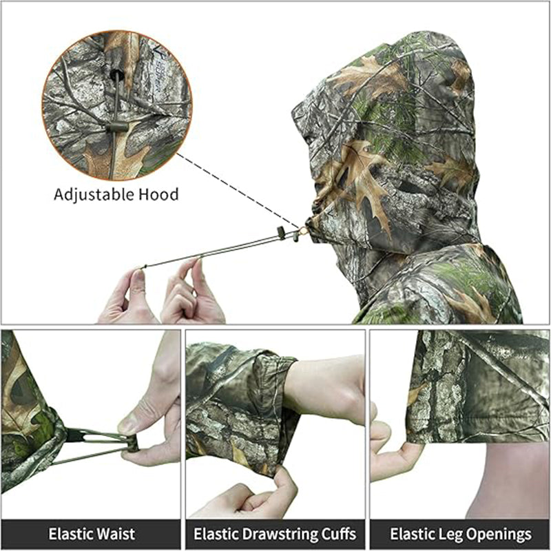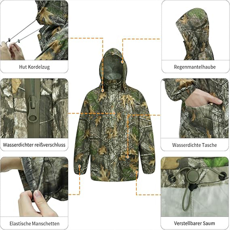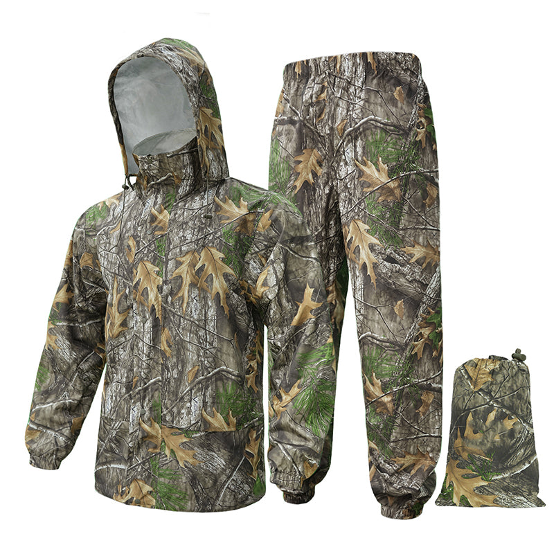 The TWS Hunting Rain Suit is crafted from high-quality Poly Pongee with a TPU coating, providing durable, waterproof, and breathable protection to keep you dry in wet conditions. Its taped seams enhance toughness, ensuring reliable performance during outdoor activities. Featuring a distinctive tree camo pattern and two large waterproof pockets, this suit offers both effective concealment and practical storage. Elastic cuffs and a design that allows pants to tuck into boots improve comfort and dryness. Lightweight and foldable, it’s ideal for hunting and versatile outdoor use.